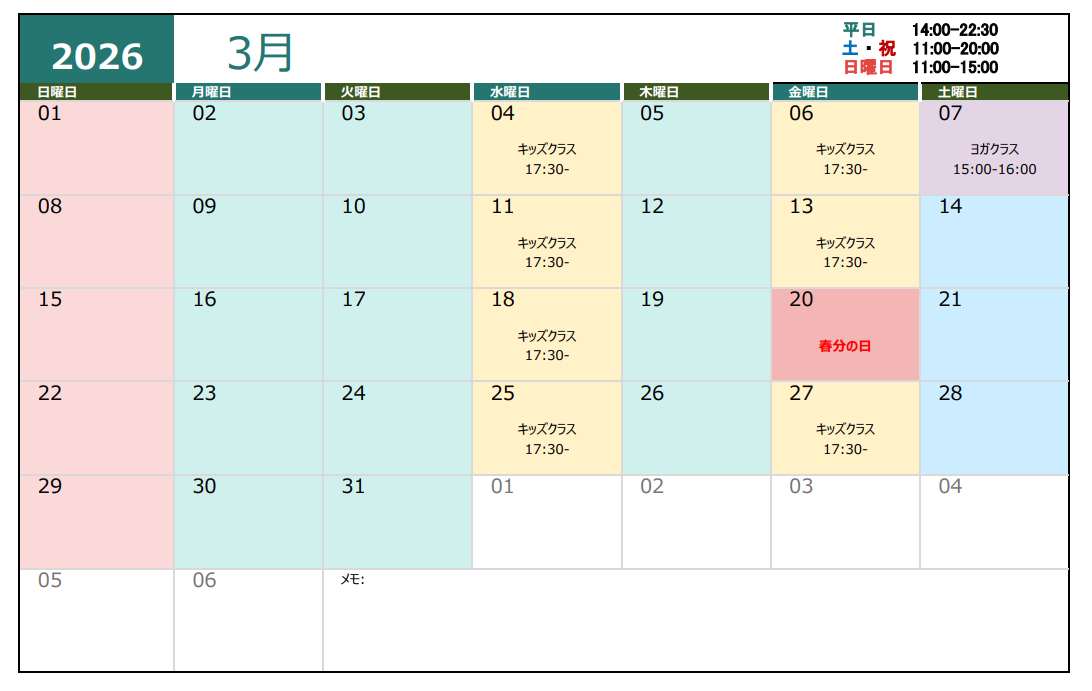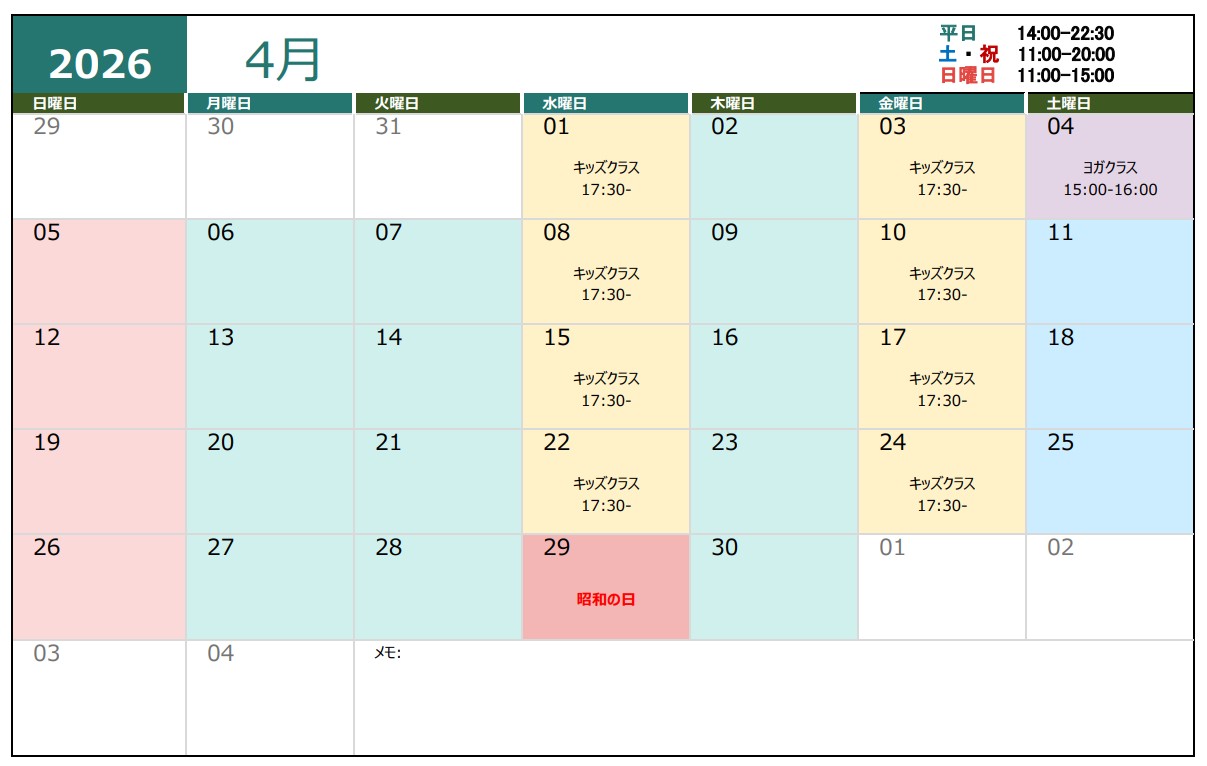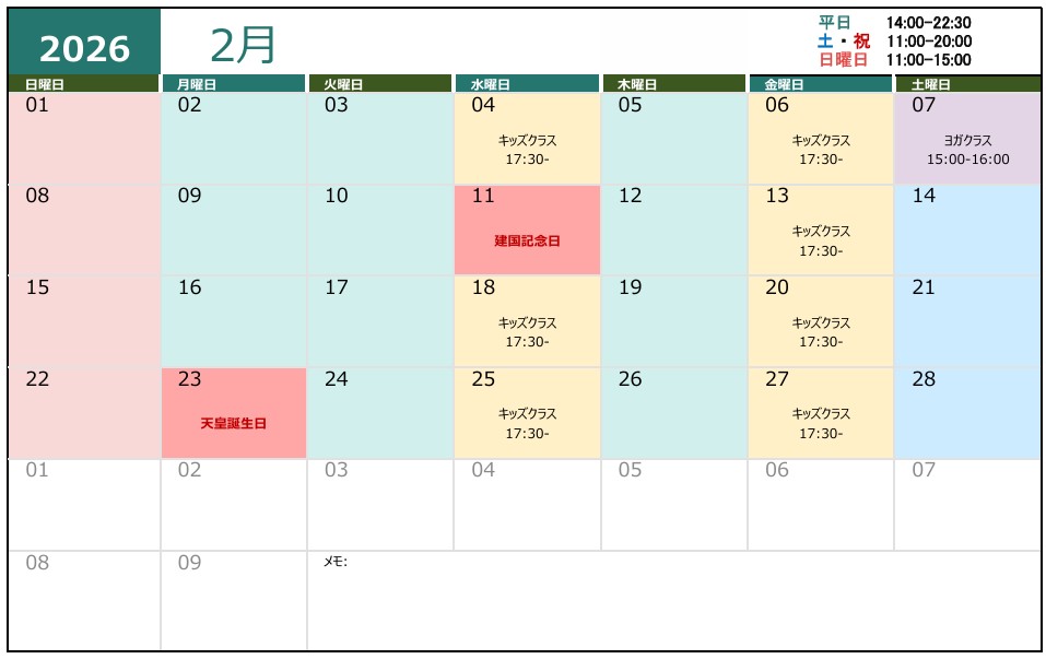 トレーナー・ジム運営スケジュール
